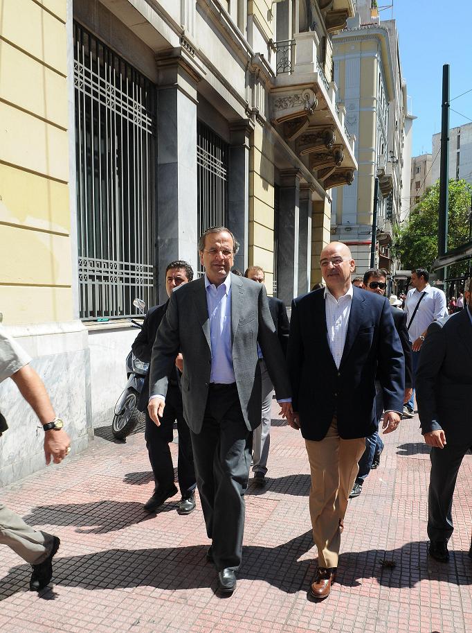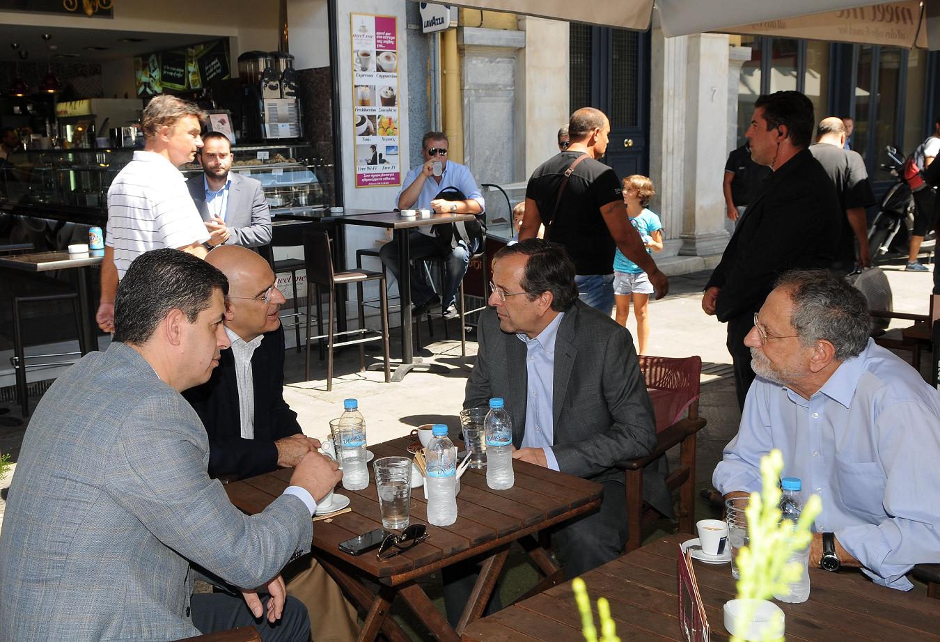 Ο Πρωθυπουργός Αντώνης Σαμαράς, συνοδευόμενος από τον Υπουργό Δημόσιας Τάξης και Προστασίας του Πολίτη Νίκο Δένδια, επισκέφτηκε σήμερα αιφνιδιαστικά την ευρύτερη περιοχή της Ομόνοιας.Περπάτησε στην πλατεία και τους δρόμους της περιοχής, συνομίλησε με καταστηματάρχες και κατοίκους, ενώ ήπιε καφέ με τους συνεργάτες του σε δυο καταστήματα της περιοχής