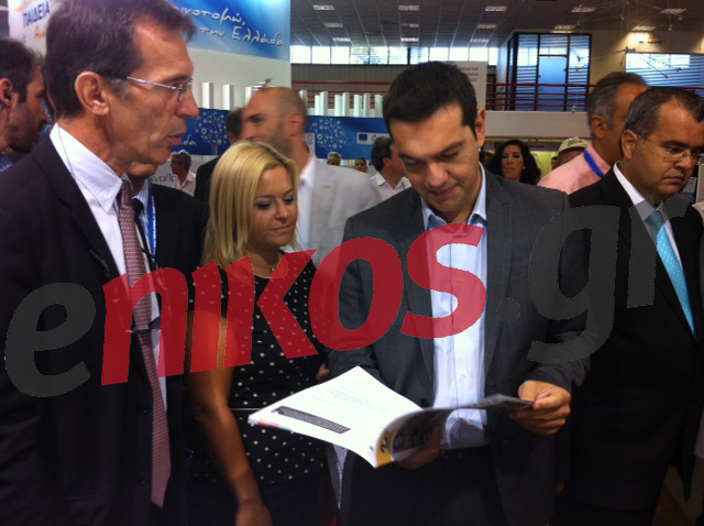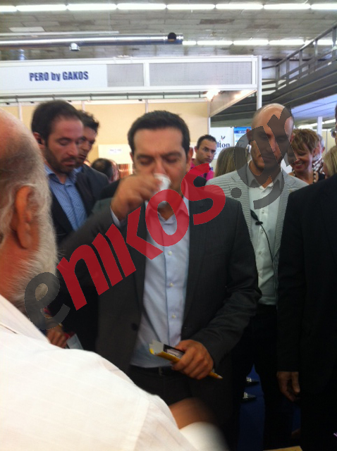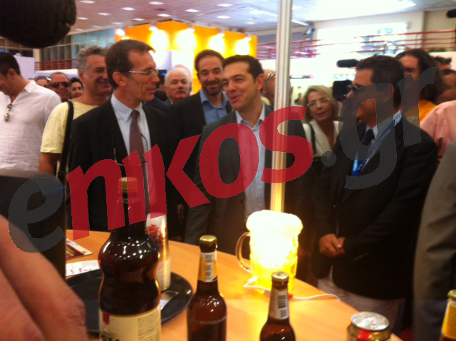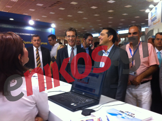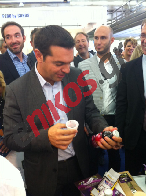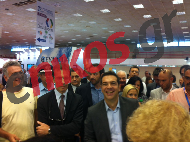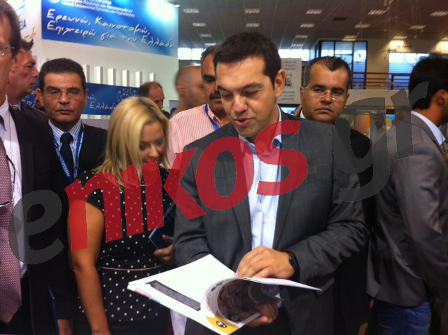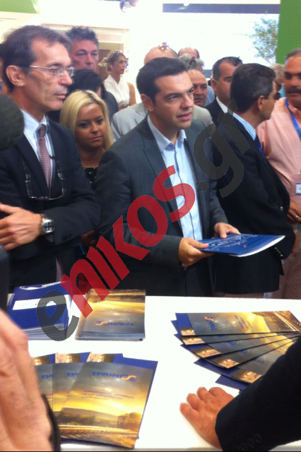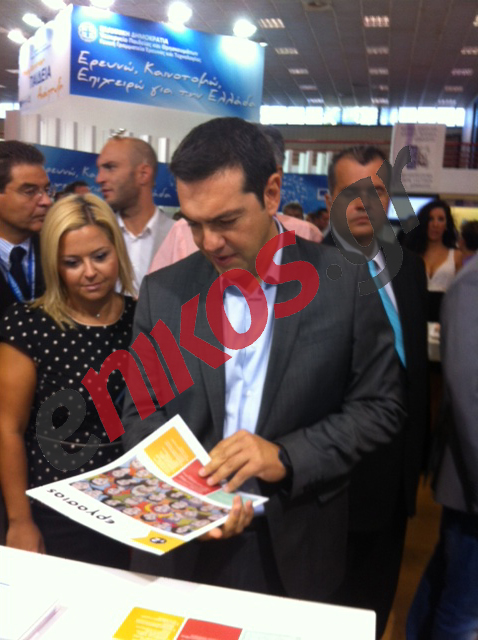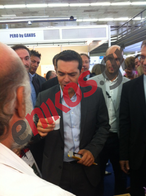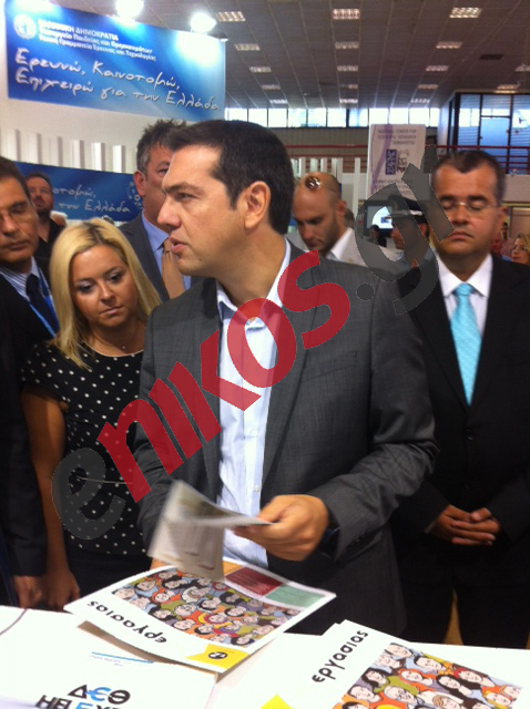 Στη συνέχεια πέρασε από το περίπτερο της ΕΥΔΑΠ λέγοντας «ελπίζω να εκθέτουμε την ΕΥΔΑΠ όχι για να την πουλήσουμε, αλλά για να την κρατήσουμε». Οι εργαζόμενοι στο περίπτερο δώρισαν στον κ. Τσίπρα δύο τσάντες με σχολικά είδη για τα παιδιά του.