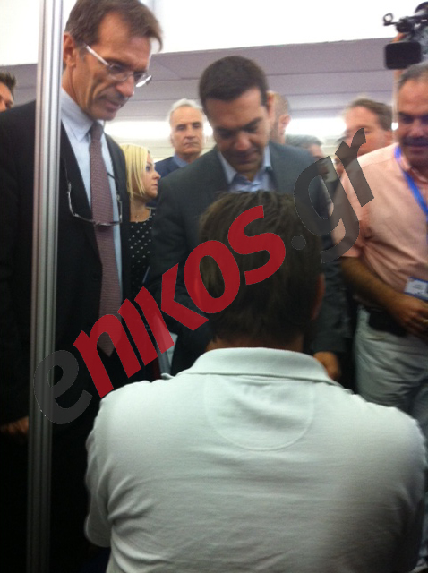 Ο κ. Τσίπρας συνομίλησε για λίγη ώρα και με δύο άτομα με ειδικές ικανότητες. O ένας του έδωσε ένα dvd με την προετοιμασία των αθλητών για τους παραολυμπιακούς αγώνες και ο άλλος εξέφρασε στον κ. Τσίπρα τις δυσκολίες που αντιμετωπίζει αυτή η κατηγορία των συνανθρώπων μας. Ο πρόεδρος του ΣΥΡΙΖΑ τον κάλεσε στην απογευματινή συνάντηση που θα έχει με τους παραγωγικούς φορείς της Θεσσαλονίκης.