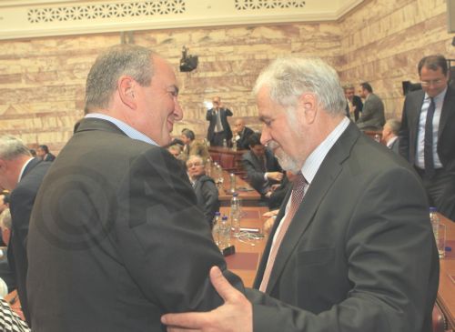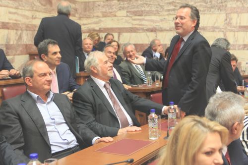 Στη σημερινή συνεδρίαση της Κοινοβουλευτικής Ομάδας της Νέας Δημοκρατίας, υπό την προεδρία του Αντώνη Σαμαρά, βρέθηκε ο πρώην πρωθυπουργός Κώστας Καραμανλής. Όπως φαίνεται και στις φωτογραφίες πολλά ήταν τα στελέχη της Νέας Δημοκρατίας που έσπευσαν να συνομιλήσουν με τον πρώην πρωθυπουργό, όπως η Όλγα Κεφαλογιάννη, ο Γιώργος Κουμουτσάκος και ο Κώστας Πουπάκης.