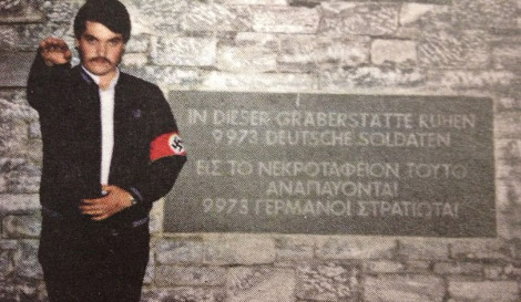 Ο Χρήστος Παππάς δε, φωτογραφίζεται σε στάση προσοχής και με τη σβάστικα στο μπράτσο την ώρα που χαιρετά ναζιστικά στο γερμανικό νεκροταφείο.