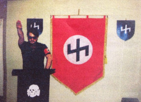Μάλιστα, σε μία φωτογραφία από τα γραφεία της Χρυσής Αυγής η σβάστικα έχει αντικατασταθεί από ένα ακόμη πιο μισητό σύμβολο, αυτό των αιμοσταγών SS.