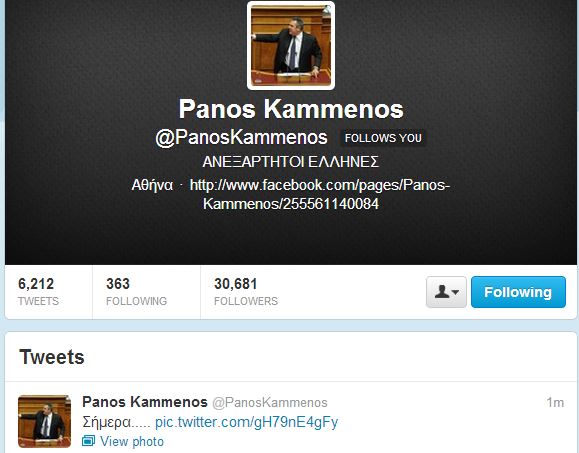 Ο Πρόεδρος των Ανεξάρτητων Ελλήνων αναδημοσίευσε στο twitter, μία φωτογραφία που τον απεικονίζει ως Ιησού “αποφασισμένο να βιώσει την Κυριακή των Βαΐων, παρά τα εμπόδια οι μνημονιακές χουντικές συνεδριάσεις” σημειώνεται στη λεζάντα της φωτογραφίας.