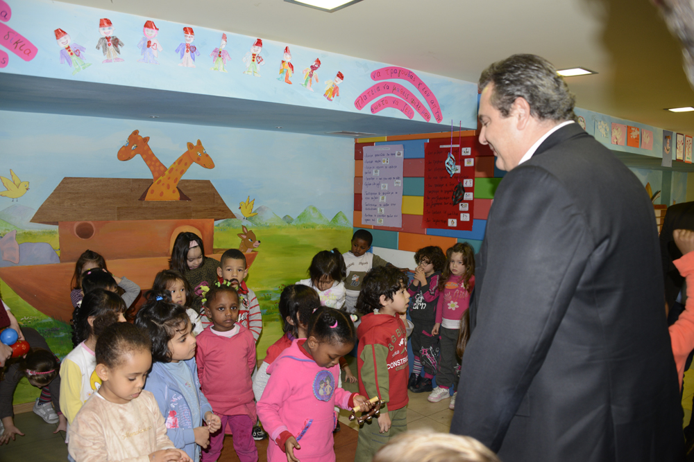 Ο κ. Καμμένος άκουσε τα κάλαντα από τα παιδιά, έπαιξε μαζί τους και ξεναγήθηκε στο χώρο.