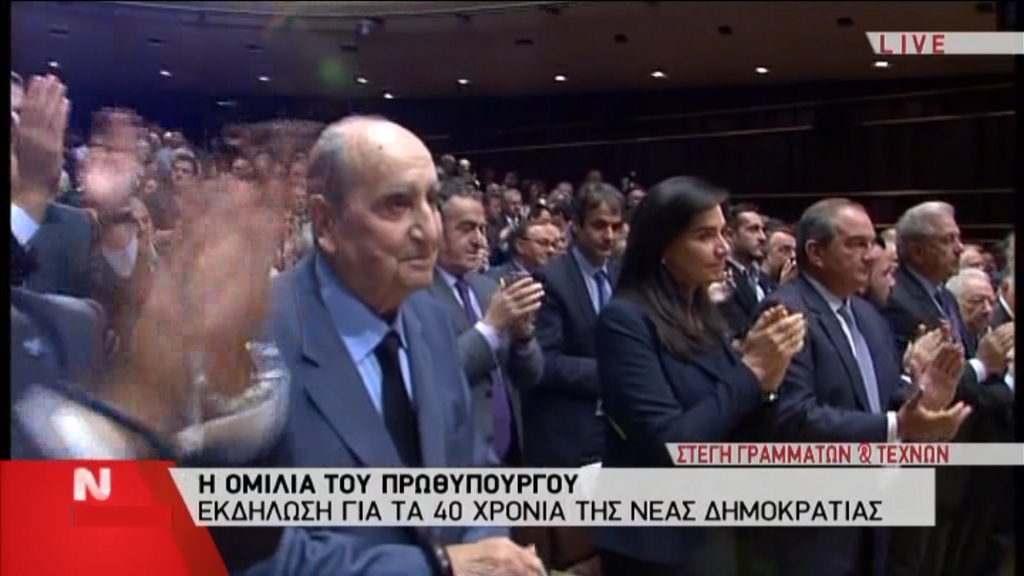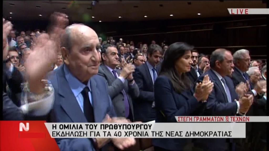 Στο κλείσιμο της ομιλίας του Πρωθυπουργού, ο επίτιμος Πρόεδρος της Νέας Δημοκρατίας,Κωνσταντίνος Μητσοτάκης, χειροκρότησε και αυτός μαζί με το υπόλοιπο ακροατήριο στην αίθουσα γραμμάτων και τεχνών…