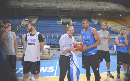 Την προπόνηση της εθνικής ομάδας μπάσκετ παρακολούθησε χθες ο Αντώνης Σαμαράς. Ο Πρωθυπουργός φωτογραφήθηκε με τους διεθνείς και τους ευχήθηκε «καλή επιτυχία» ενόψει Μουντομπάσκετ.