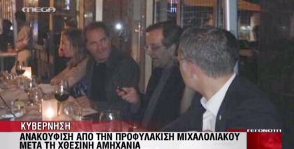 Ο Αντώνης Σαμαράς πληροφορήθηκε την απόφαση για την προφυλάκιση του Νίκου Μιχαλολιάκου κατά τη διάρκεια του δείπνου που παρέθεσε στην Ουάσινγκτον στους Έλληνες ανταποκριτές. Το πώς αντέδρασε ο Πρωθυπουργός καταγράφεται στην συγκεκριμένη φωτογραφία.
