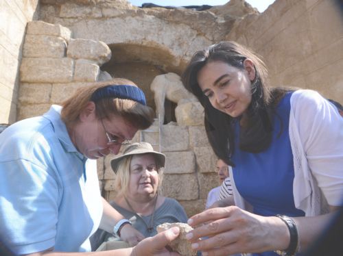 Όπως φαίνεται και στις φωτογραφίες η σύζυγος του Πρωθυπουργού, Γεωργία Σαμαρά, κοίταξε από κοντά ορισμένα από τα ευρήματα που βρέθηκαν στο χώρο των ανασκαφών.