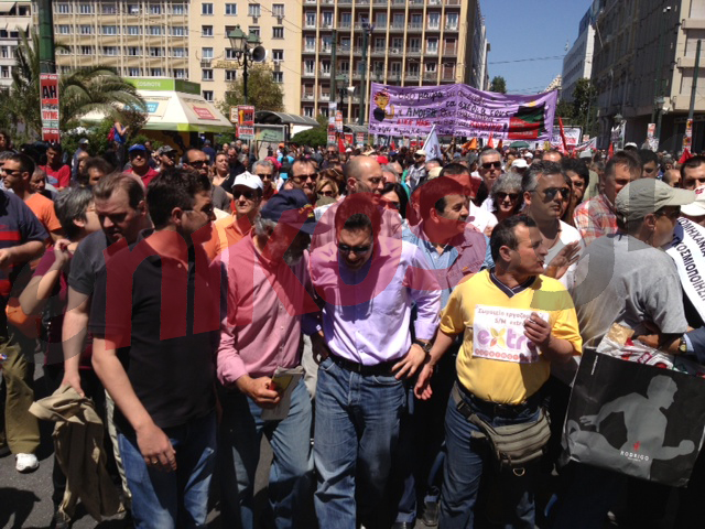 Με τους συγκεντρωμένους στην πλατεία Κλαυθμώνος που συμμετέχουν στις εκδηλώσεις της ΓΣΕΕ και της ΑΔΕΔΥ για την Πρωτομαγιά, συνομιλεί αυτή την ώρα ο Πρόεδρος του ΣΥΡΙΖΑ, Αλέξης Τσίπρας…
