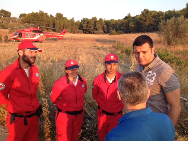 Όπως έγραψε ο ίδιος στο twitter, μεταφέρθηκε εκεί, με ελικόπτερο Super Puma.