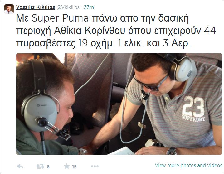 ΦΩΤΟ-Ο Β. Κικίλιας με Super Puma στη φωτιά