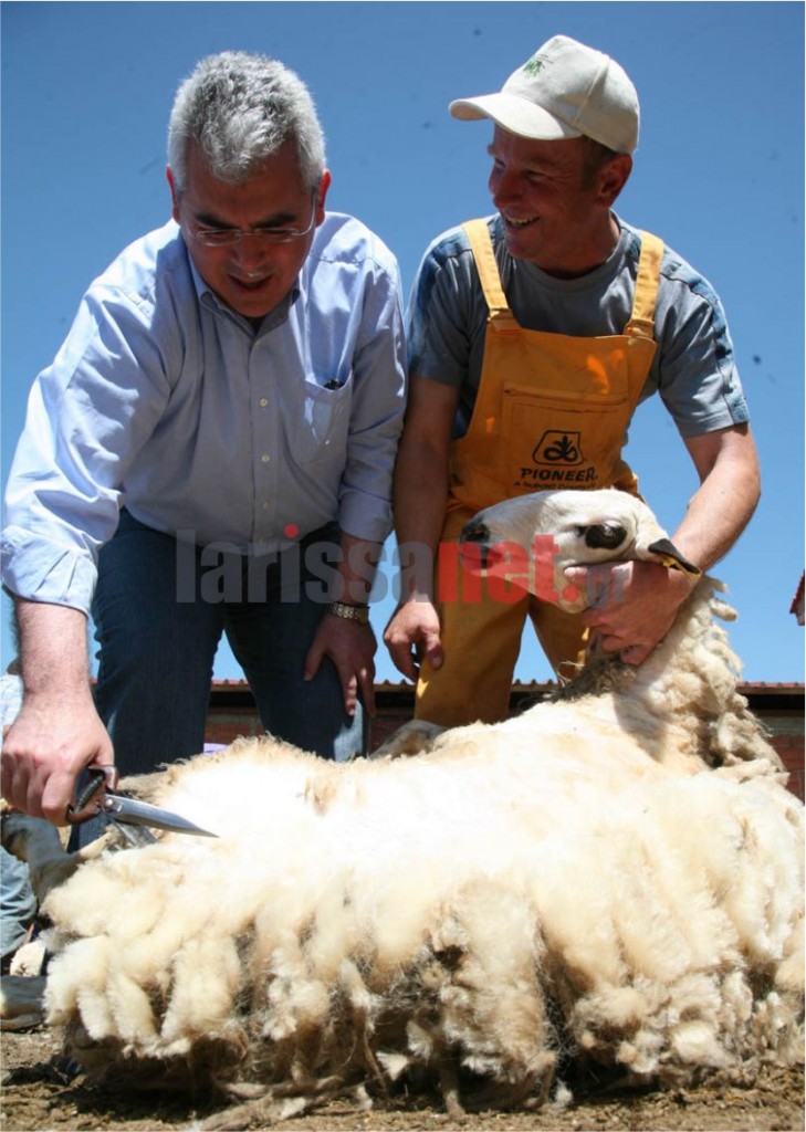 Η κουρά των προβάτων είναι δύσκολη και επίπονη διαδικασία, αλλά ο υπουργός τα καταφέρνει μια χαρά.