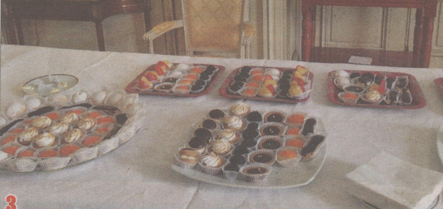 Στα τραπεζάκια μέσα κι έξω από το γραφείο του υπήρχαν σου, εκλέρ και πολύχρωμα λαχταριστά ταρτάκια, σύμφωνα με την Espresso της Κυριακής.