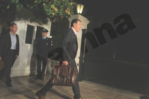 Φορώντας επίσημο κοστούμι και χωρίς το γνωστό σακίδιο του έφθασε στο Μέγαρο Μαξίμου, ο επικεφαλής του Ποταμιού, Σταύρος Θεοδωράκης, προκειμένου να συναντηθεί με Πρωθυπουργό, Αντώνη Σαμαρά.
