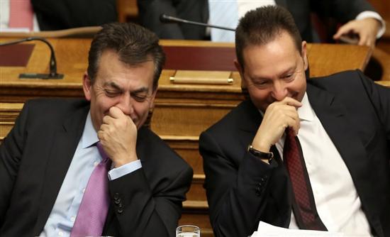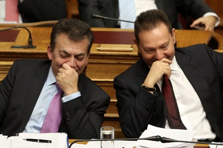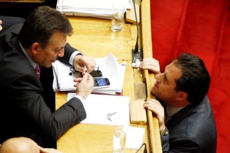 Αντίθετα ο υπουργός Εργασίας φαίνεται ότι βρήκε καλή παρέα στο πρόσωπο του υπουργού Οικονομικών. Σε όλη τη διάρκεια της συνεδρίασης συνομιλούσαν, έγραφαν και έφτασαν στο σημείο να αστειεύονται αφού ο φωτογραφικός φακός τους εντόπισε να προσπαθούν να κρύψουν με τα χέρια τα χαμόγελα τους.