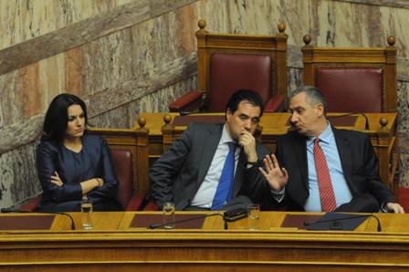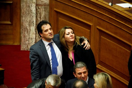 Ρεσιτάλ επικοινωνίας έδωσε ο υπουργός Υγείας που δεν άφησε υπουργό και βουλευτή που να μην χαιρετίσει. Εκτός από τις αστείες χειρονομίες στον αναπληρωτή υπουργό Οικονομικών, Χρήστο Σταϊκούρα ο Άδωνις Γεωργιάδης κρατούσε αγκαλιά την βουλευτή της ΝΔ, Ευγενία Αυγερινοπούλου. Σε όλη τη διάρκεια της συνεδρίασης συνομίλησε τουλάχιστον με το μισό υπουργικό συμβούλιο: με τον υπουργό Διοικητικής Μεταρρύθμισης, Κυριάκο Μητσοτάκη, την υπουργό Τουρισμού, Όλγα Κεφαλογιάννη αλλά και τον υπουργό Εσωτερικών, Γιάννη Μιχελάκη. Σε κάποια στιγμή μάλιστα πλησίασε στο έδρανο και τον υπουργό Εργασίας, Γιάννη Βρούτση.