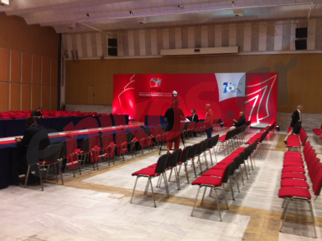 Ετοιμάζεται η αίθουσα στο Βελλίδειο συνεδριακό κέντρο, όπου θα παραχωρήσει συνέντευξη Τύπου, ο πρόεδρος του ΣΥΡΙΖΑ, Αλέξης Τσίπρας…