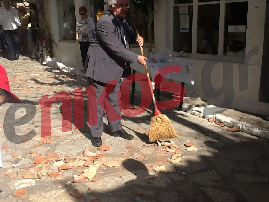 Πρώην βουλευτής της Νέας Δημοκρατίας, εθεάθη σήμερα στην Πρέβεζα να σκουπίζει τις σπασμένες στάμνες, αμέσως μετά το φαντασμαγορικό έθιμο που πραγματοποιήθηκε στην κεντρική αγορά κατά τη διάρκεια της πρώτης Ανάστασης.