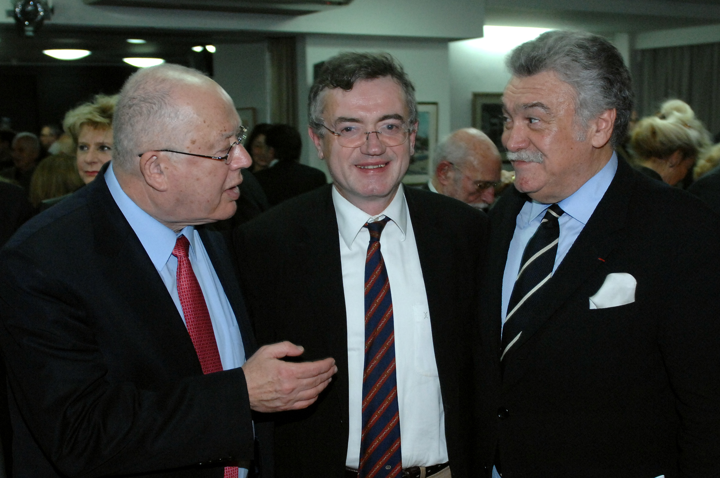 O πρόεδρος της επιτροπής Ελληνοισραηλινής Φιλίας του Ελληνικού Κοινοβουλίου, βουλευτής Ν.Δ, Έβρου, Άκης Γεροντόπουλος, ανάμεσα στον πρέσβη του Ισραήλ στην Ελλάδα, Arye Mekel (αριστερά) και τον πρόεδρο του ΚΙΣΕ κ. Δαυίδ Σαλτιέλ