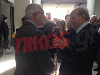 Στις φωτογραφίες εικονίζεται ο Πέτρος Μολυβιάτης (πάνω) και παρακάτω ο ίδιος να συνομιλεί με τον Βύρωνα Πολύδωρα