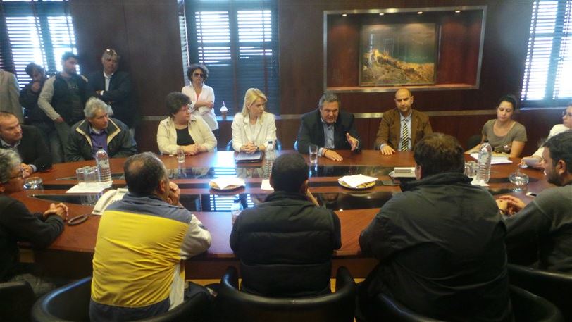 «Σήμερα διέκοψα την περιοδεία μου στην Μακεδονία και τη Θράκη, προκειμένου να έρθω εδώ στο Νεώριο. Πριν από λίγο καιρό κάναμε μια συμφωνία με τους εργαζόμενους, τη διοίκηση και την κυβέρνηση, να δοθεί κατ’ ανάθεση μια δουλειά του Πολεμικού Ναυτικού, για δυο δεξαμενές στο Νεώριο, προκειμένου τα χρήματα αυτά να δοθούν για πληρωμές δεδουλευμένων των εργαζόμενων.