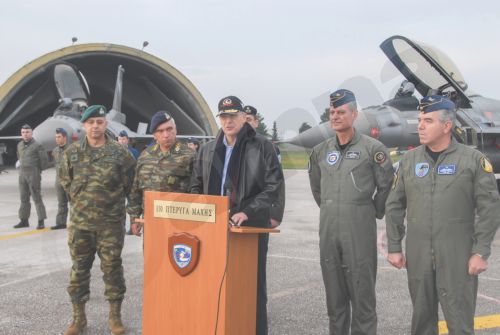 «Είμαι εξαιρετικά ευτυχής που βρίσκομαι εδώ στη Λάρισα στην καρδιά του αμυντικού μας συστήματος. Είχα την ευκαιρία να διαπιστώσω κατ΄ αρχήν στην 1η Στρατιά , αλλά και στο ΑΤΑ και στο Ελληνικό Στρατηγείο Επιχειρήσεων της Ε.Ε ότι πραγματοποιείται ιδιαίτερα σημαντικό έργο και ότι ο ελληνικός λαός σήμερα μπορεί να αισθάνεται ασφαλής.
