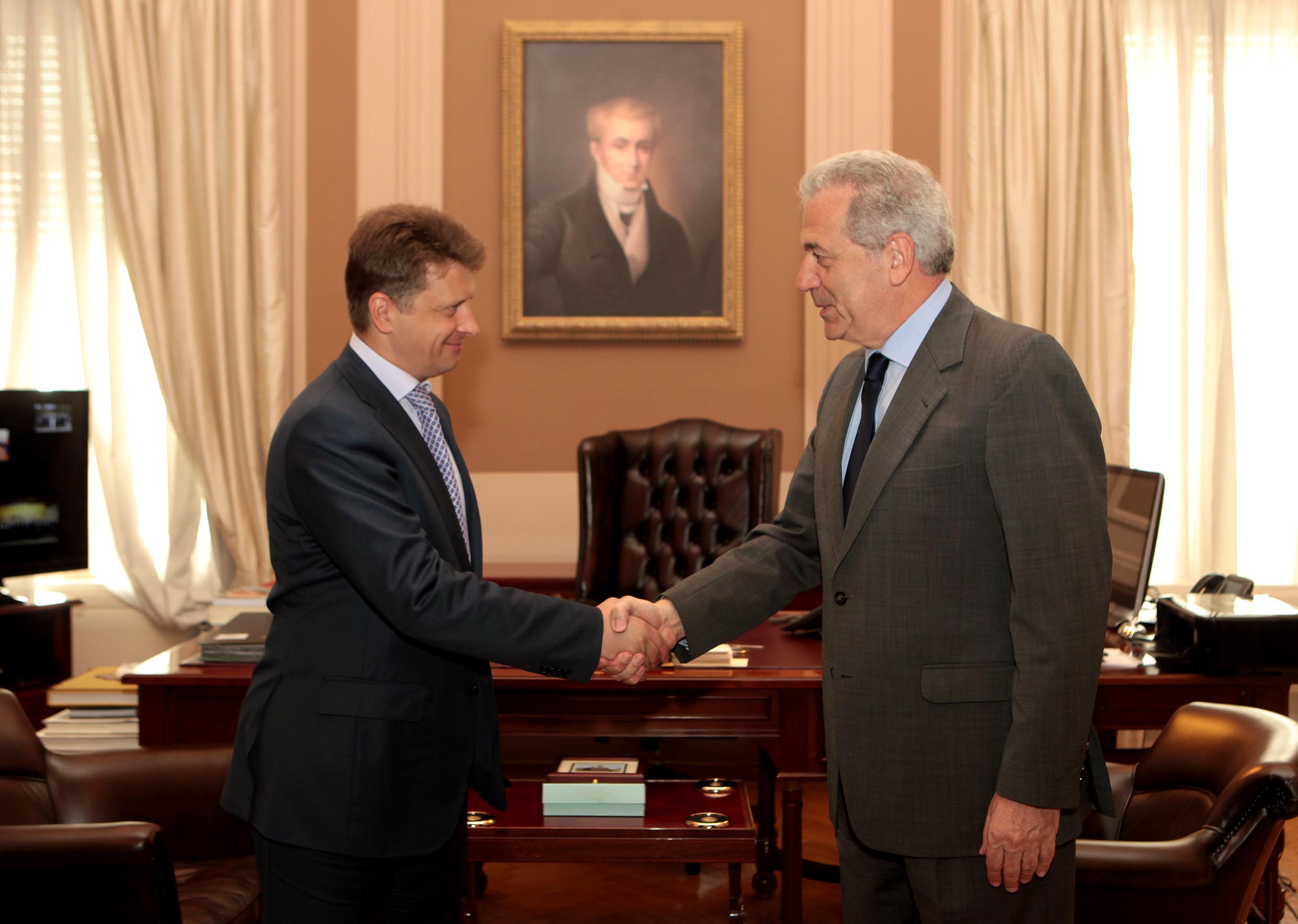 Ο Υπουργός Εξωτερικών Δημήτρης Αβραμόπουλος συναντήθηκε στο Υπουργείο Εξωτερικών με τον Υπουργό Μεταφορών της Ρωσικής Ομοσπονδίας και Πρόεδρο της Ρωσικής Αντιπροσωπίας.