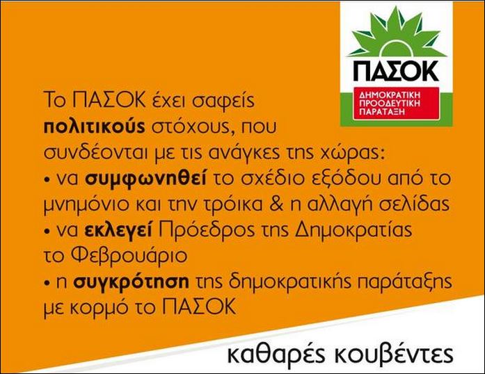 Με ένα μήνυμα για την έξοδο από το μνημόνιο, και με το σύνθημα «Καθαρές κουβέντες» το ΠΑΣΟΚ παρουσίασε πριν από λίγο στα social media το νέο του σήμα με το έντονο κόκκινο χρώμα κάτω από τον πράσινο ήλιο.