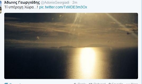 Ο Άδωνις Γεωργιάδης ανέβασε πριν από λίγο μια φωτογραφία στο Twitter, που δείχνει ένα πανέμορφο τοπίο. «Τι υπέροχη χώρα», ήταν το σχόλιο του υπουργού Υγείας, ο οποίος επισκέφθηκε σήμερα το Καστελόριζο.