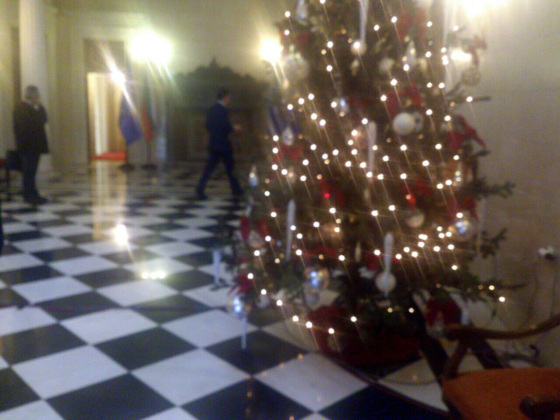Με ασημένιες μπάλες και κόκκινους φιόγκους στολίστηκε και φέτος το Χριστουγεννιάτικο δέντρο στο Μέγαρο Μαξίμου.