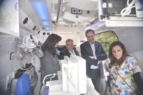 Ο πρωθυπουργός ενημερώθηκε για το έργο της οργάνωσης και συνεχάρη τον πρόεδρο Κωνσταντίνο Γιαννόπουλο. «Ήρθαμε να σας ευχαριστήσουμε ως μία απλή οικογένεια, αποτελείτε έμπνευση, το έργο σας είναι πολυσήμαντο για όλη την Ελλάδα» τόνισε ο πρωθυπουργός, ο οποίος ενημερώθηκε πως το «Χαμόγελο του Παιδιού» θα δωρίσει στο ΕΚΑΒ άλλες τρεις κινητές μονάδες για νεογνά και παιδιά, πέραν των οκτώ που έχει δώσει τα τελευταία χρόνια.