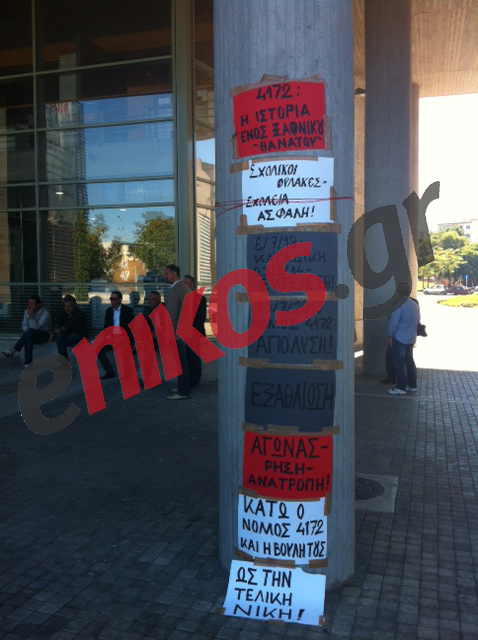 Με σχολικούς φύλακες που έχουν κατασκηνώσει έξω από το δημαρχείο Θεσσαλονίκης μίλησε ο Αλέξης Τσίπρας, πριν από τη συνάντησή του με τον Γιάννη Μπουτάρη. Οι σχολικοί φύλακες εξέφρασαν στον κ. Τσίπρα τους προβληματισμούς τους και ζήτησαν τη συμπαράστασή του.