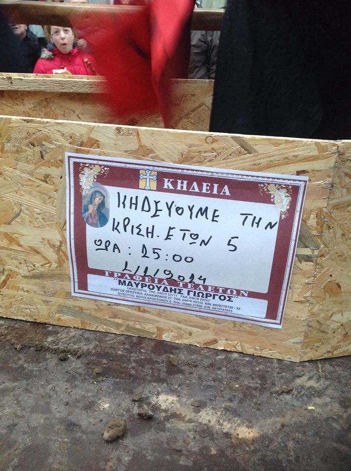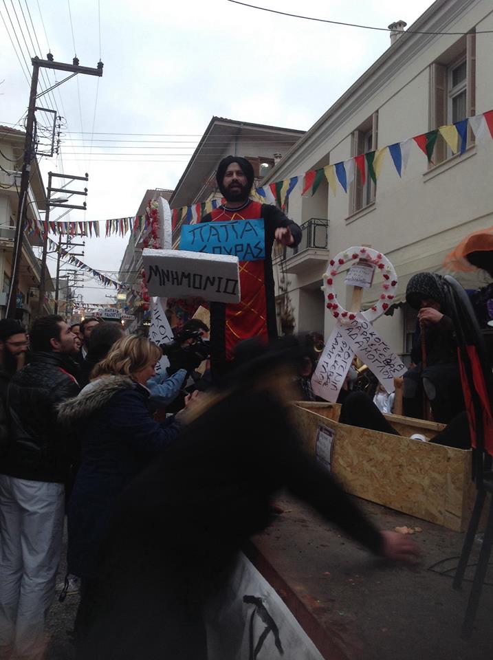 Ο λόγος για τον βουλευτή του ΣΥΡΙΖΑ, Βαγγέλη Διαμαντόπουλο. Το “αντιμνημονιακό” άρμα στο οποίο ανέβηκε ντυμένος παπάς έγραφε: «Κηδεύουμε την κρίση. Ετών 5».
