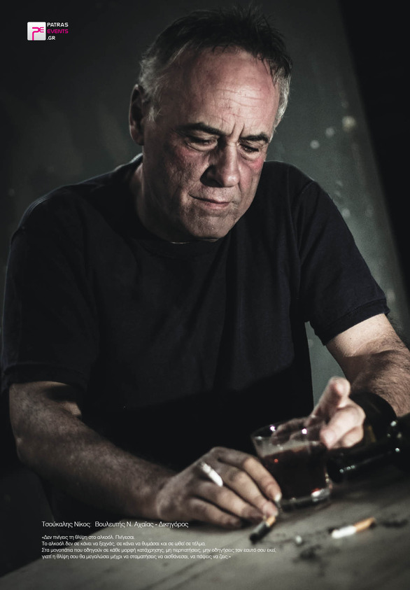 Ως εξαρτημένα από ουσίες άτομα εμφανίστηκαν μπροστά στον φακό δέκα επώνυμοι Πατρινοί για τις ανάγκες φωτογράφισης από τοπικό περιοδικό, με σκοπό την ενημέρωση του κοινού για τις δραματικές επιπτώσεις της εξάρτησης από αλκοόλ και ναρκωτικά. Το concept της εκστρατείας, με σύνθημα «Στρέψου κατά των ναρκωτικών και του αλκοόλ, αγάπησε τον εαυτό σου», ήταν η εικόνα των προσωπικοτήτων αλλοιωμένη υπό την επήρεια ναρκωτικών και αλκοόλ.