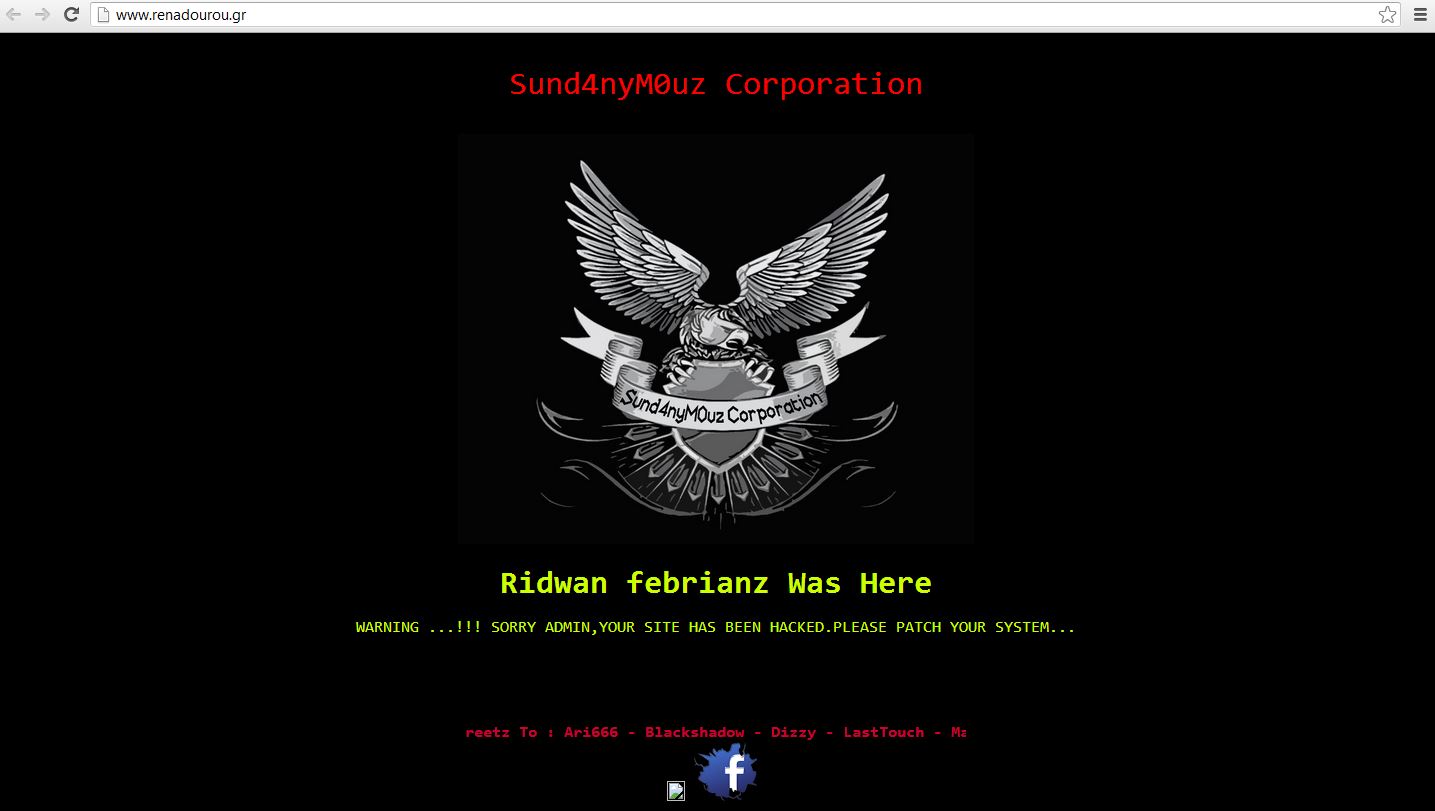 Στη σελίδα της κ. Δούρου αναγράφεται το μήνυμα «Ridwan febrianz Was Here», κάτω από το «έμβλημα» της «Sund4nyM0uz Corporation», υπό τους ήχους ραπ μουσικής.