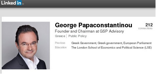 Το επαγγελματικό του προφίλ στο Linkedin, έχει αλλάξει ο πρώην υπουργός Οικονομικών της κυβέρνησης του Παπανδρέου, Γιώργος Παπακωνσταντίνου. Όπως φαίνεται και στη φωτογραφία στο προφίλ του αναγράφεται ως ιδρυτής και επικεφαλής της εταιρίας GSP Advisory.