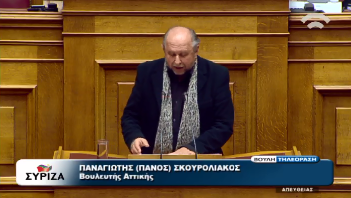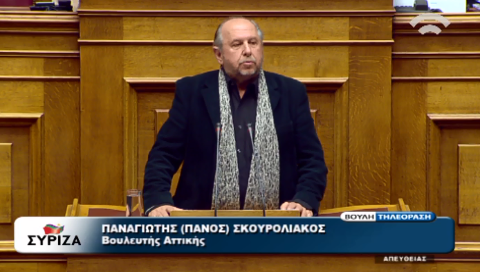 Στη συζήτηση για την κύρωση του κρατικού προϋπολογισμού, μίλησε νωρίτερα ο βουλευτής του ΣΥΡΙΖΑ, Πάνος Σκουρολιάκος. Όπως φαίνεται και στις φωτογραφίες ο κ. Σκουρολιάκος, ανέβηκε στο βήμα της βουλή φορώντας ένα μακρύ γκρι κασκόλ, το οποίο έκλεψε τις εντυπώσεις.