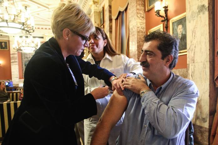 Εμβόλιο κατά της γρίπης έκαναν ο αναπληρωτής υπουργός Υγείας, Παύλος Πολάκης και ο αντιπρόεδρος της Νέας Δημοκρατίας, Άδωνις Γεωργιάδης, μέσα στη Βουλή.