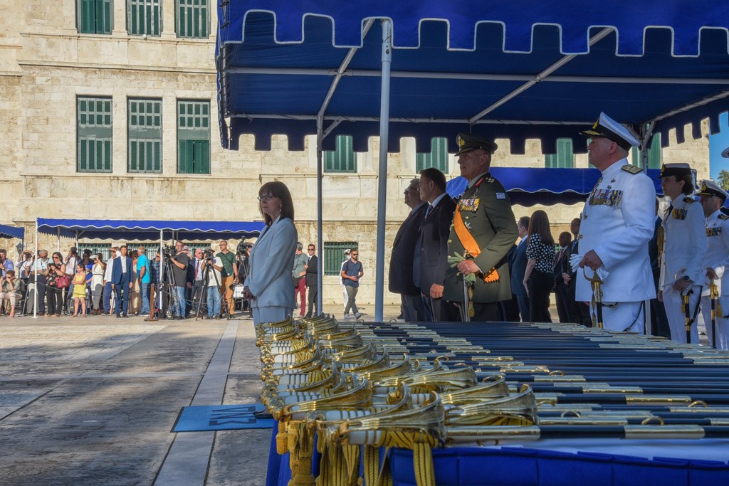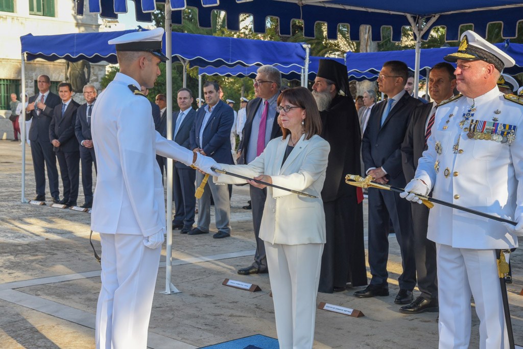 Την περασμένη Πέμπτη, 2 Ιουλίου, πραγματοποιήθηκε στη Σχολή Ναυτικών Δοκίμων (ΣΝΔ) η τελετή ορκωμοσίας των νέων Σημαιοφόρων Πολεμικού Ναυτικού τάξεως 2020. Τα ξίφη στους νέους Σημαιοφόρους επέδωσε η Α.Ε. Πρόεδρος της Δημοκρατίας, Κατερίνα Σακελλαροπούλου.