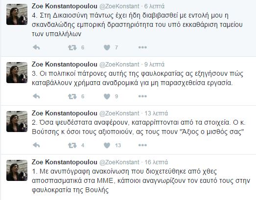 Μέσω του λογαριασμού της στο twitter απάντησε η Ζωή Κωνσταντοπούλου: