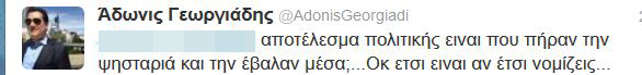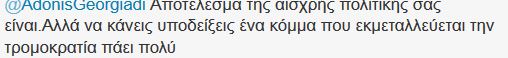 Ο Άδωνις Γεωργιάδης απάντησε με την σειρά του: “Αποτέλεσμα πολιτικής είναι που πήραν την ψησταριά και την έβαλαν μέσα;…Οκ ετσι ειναι αν έτσι νομίζεις…”.