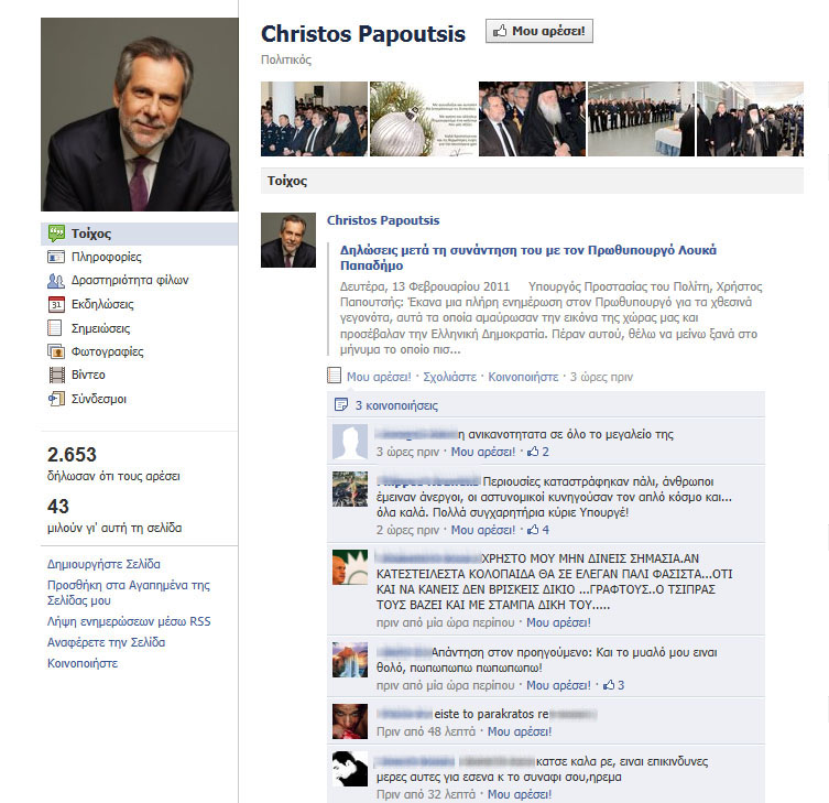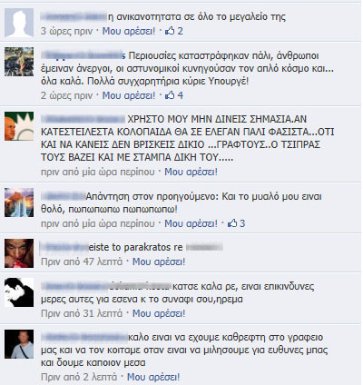 Στο προφίλ του υπουργού Προστασίας του Πολίτη στο facebook, πολίτες σχολιάζουν αρνητικά τη στάση των αστυνομικών δυνάμεων κατά τη χθεσινή συγκέντρωση στην Αθήνα.Δείτε τα σχόλια:
