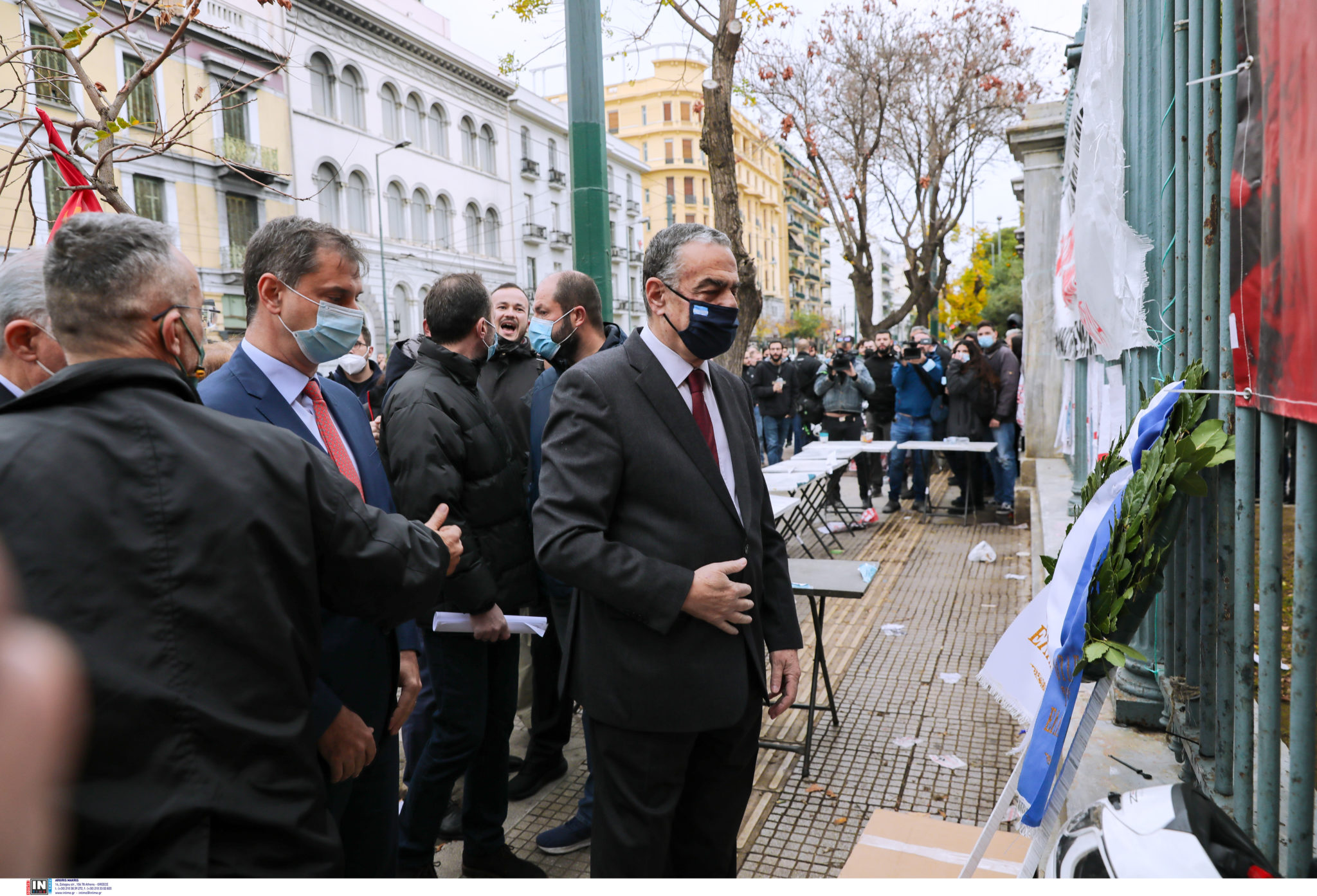 Δηλώσεις έκαναν ο Χαράλαμπος Αθανασίου και ο Χάρης Θεοχάρης μετά την ένταση που προκλήθηκε και το «μπλόκο» στην κατάθεση στεφάνου από την Διακοινοβουλευτική Επιτροπή στο Πολυτεχνείο.