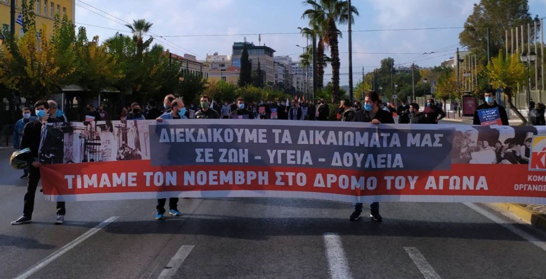 “Έσπασε” την απαγόρευση συναθροίσεων το ΚΚΕ και πραγματοποίησε συγκέντρωση και πορεία για τον εορτασμό του Πολυτεχνείου. Αρχικά έγινε συγκέντρωση στην αμερικανική πρεσβεία με παρέμβαση της ΚΟ Αττικής του ΚΚΕ. Στη συνέχεια θα γίνει ανάλογη συγκέντρωση στο ΕΑΤ ΕΣΑ.
