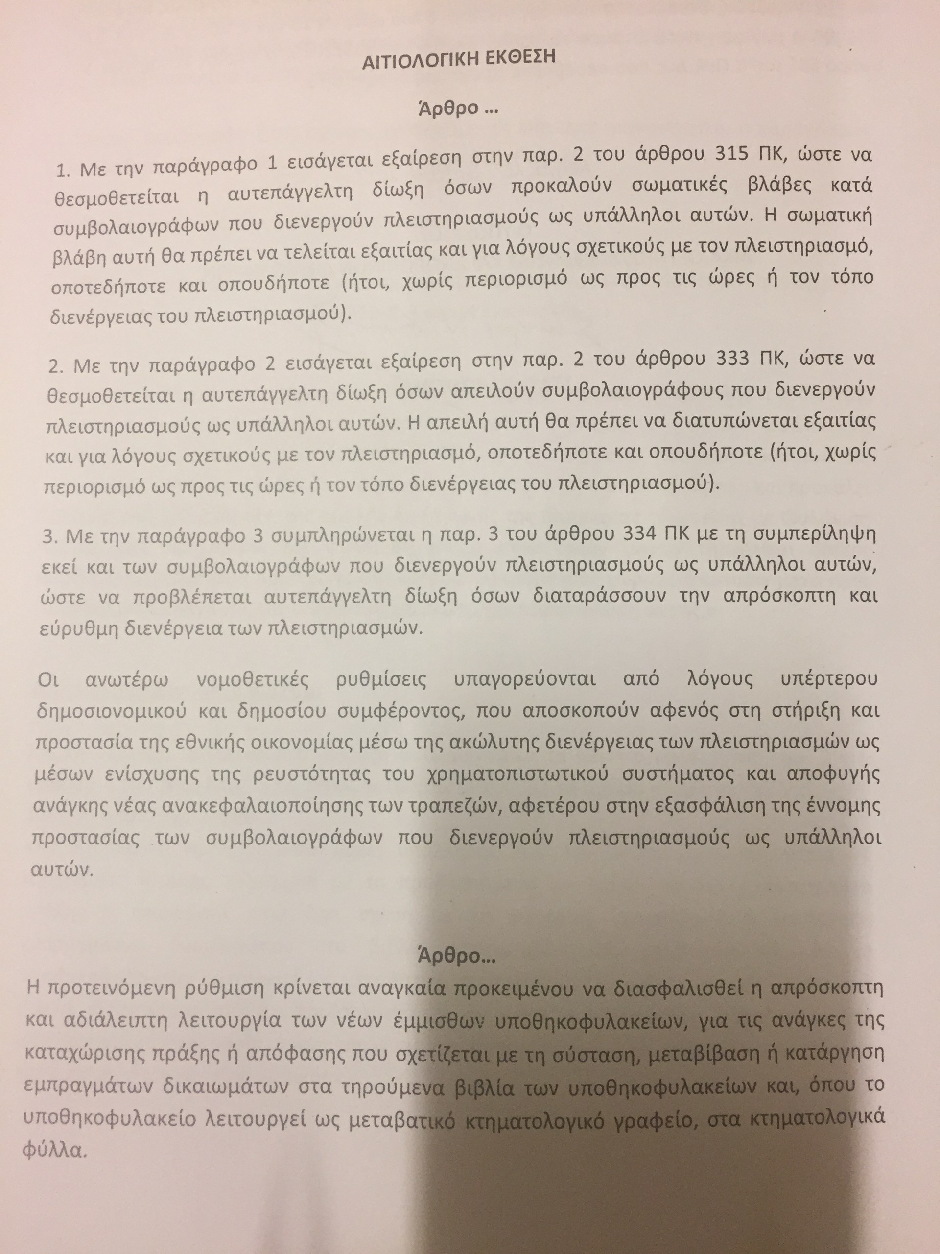 Από την τροπολογία ο κ. Κοντονής αφαίρεσε την παράγραφο 2, με αποτέλεσμα να μην απειλούνται με αυτεπάγγελτη δίωξη όσοι απειλούν συμβολαιογράφους και να απαιτείται έγκληση από το θύμα.