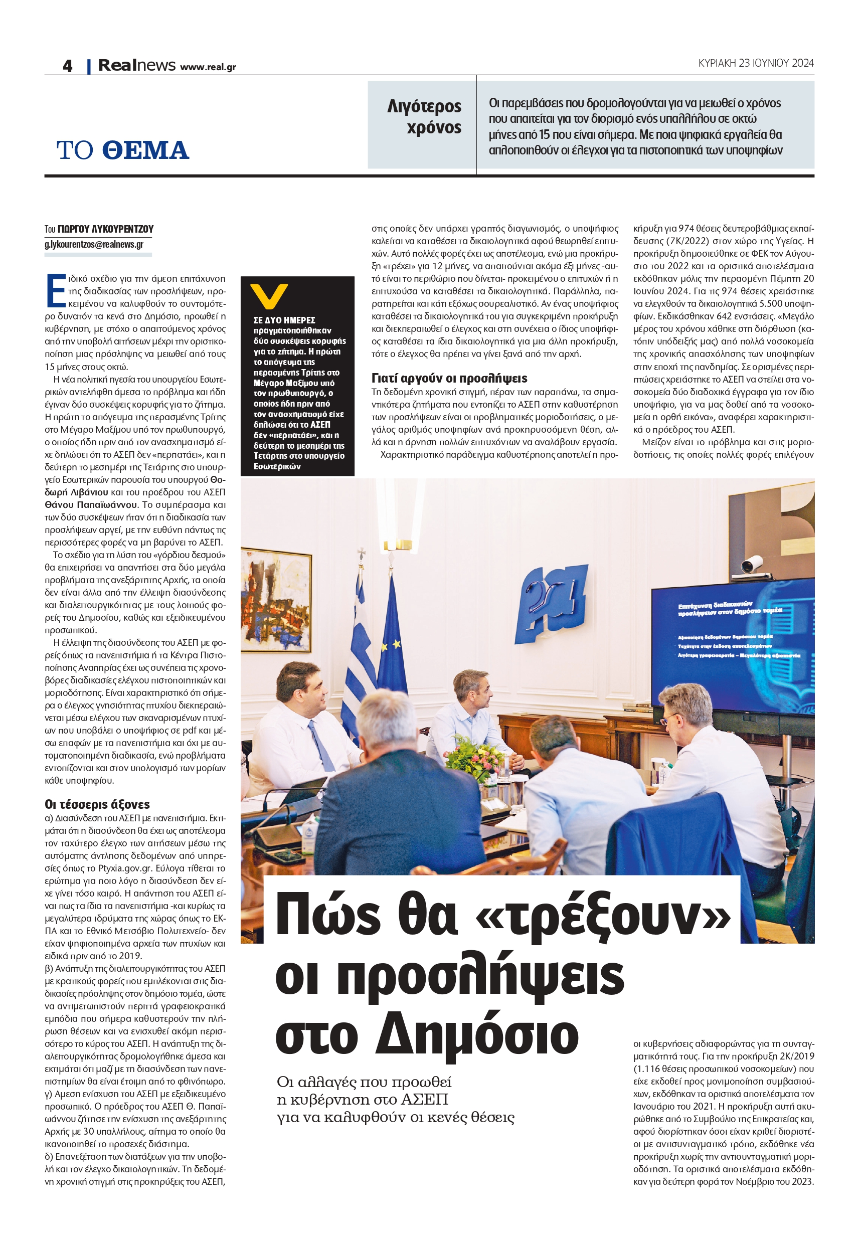 δ) Επανεξέταση των διατάξεων για την υποβολή και τον έλεγχο δικαιολογητικών. Τη δεδομένη χρονική στιγμή στις προκηρύξεις του ΑΣΕΠ, στις οποίες δεν υπάρχει γραπτός διαγωνισμός, ο υποψήφιος καλείται να καταθέσει τα δικαιολογητικά αφού θεωρηθεί επιτυχών. Αυτό πολλές φορές έχει ως αποτέλεσμα, ενώ μια προκήρυξη «τρέχει» για 12 μήνες, να απαιτούνται ακόμα έξι μήνες -αυτό είναι το περιθώριο που δίνεται- προκειμένου ο επιτυχών ή η επιτυχούσα να καταθέσει τα δικαιολογητικά.