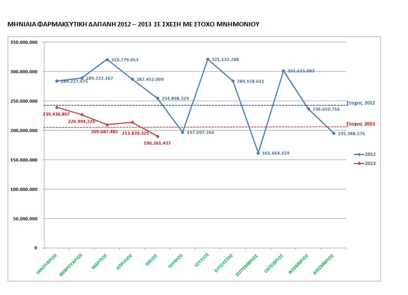 Σύμφωνα με αυτά, για τον μήνα Μάιο, καταγράφεται αισθητή μείωση, με την φαρμακευτική δαπάνη να διαμορφώνεται στα 190 εκ. ευρώ από 255 εκ. που ήταν τον περσινό Μάιο.