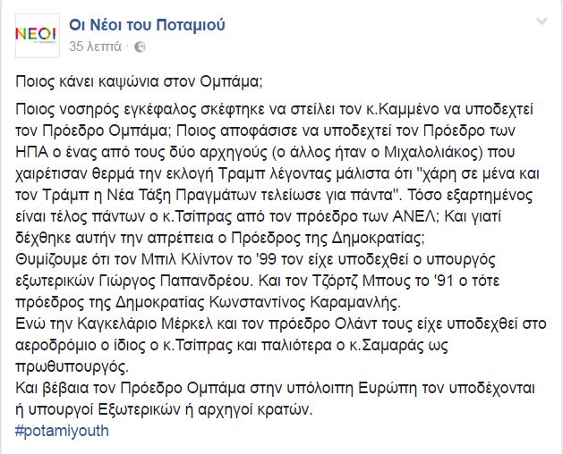 Ποτάμι: Ποιος κάνει καψώνια στον Ομπάμα;