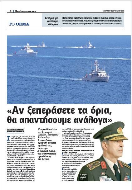 Αυτό το μήνυμα έχει σταλεί στην Τουρκία και με άμεσο τρόπο. Στην τελευταία συνάντηση που είχε ο Α/ΓΕΕΘΑ, ναύαρχος Ευάγγελος Αποστολάκης, με τον Τούρκο αρχηγό Χουλουσί Ακάρ, δεν «μάσησε» τα λόγια του. «Αν ξεπεράσετε τα όρια, θα απαντήσουμε ανάλογα», ήταν το νόημα αυτών που του είπε και αναμένεται να του επαναλάβει στην επόμενη συνάντησή τους, που δεν θα αργήσει, απ’ ό,τι λένε οι πληροφορίες.
