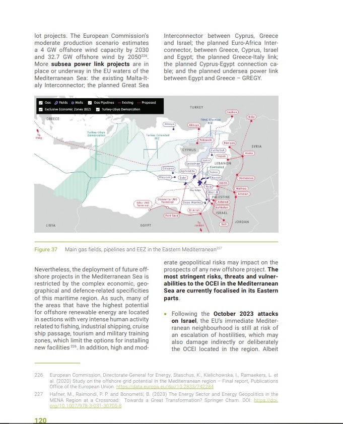 Ενώ στην σελίδα 120 δημοσιεύεται χάρτης που με τον τίτλο «Κύρια κοιτάσματα φυσικού αερίου, αγωγοί και ΑΟΖ στην Ανατολική Μεσόγειο» περιλαμβάνεται και το ανυπόστατο τουρκολιβυκό μνημόνιο.